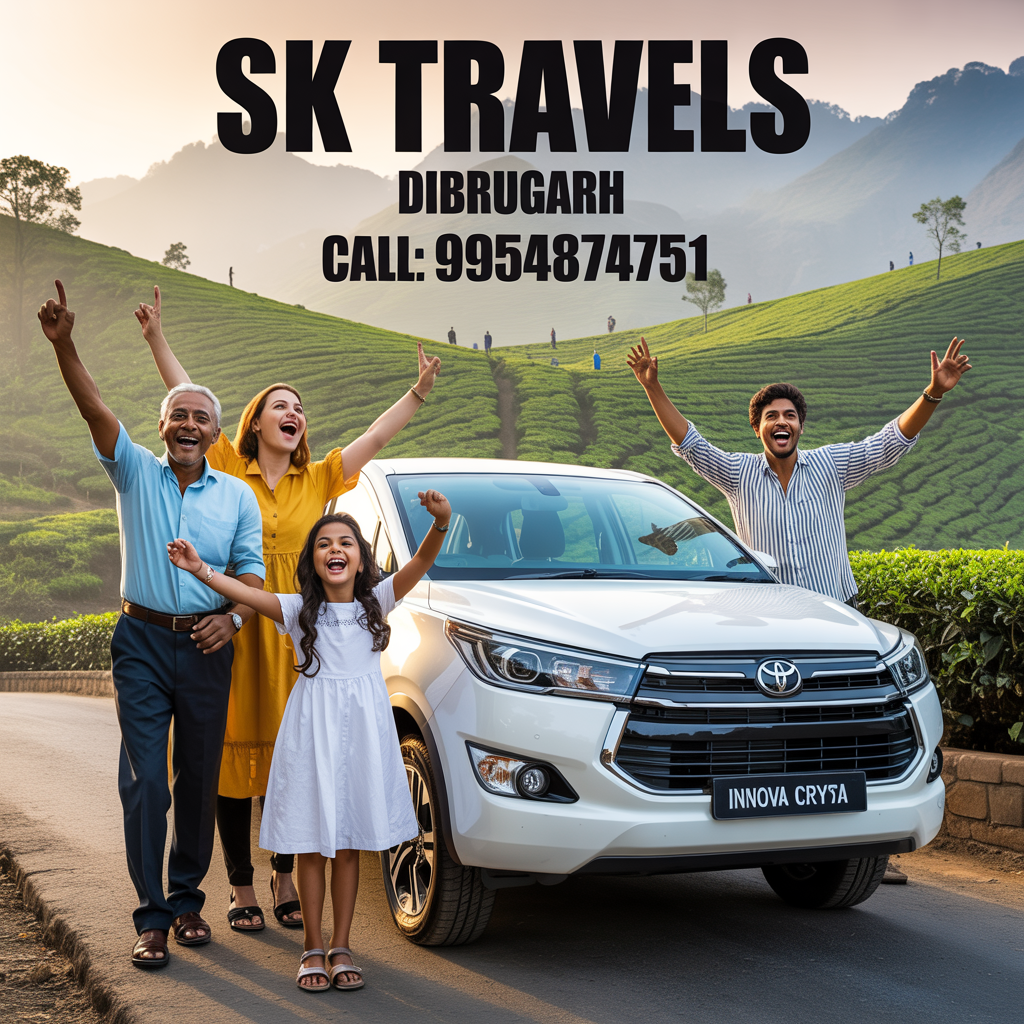 SK Travels Dibrugarh is a trusted travel service provider based in Dibrugarh, Assam. We offer comfortable, affordable, and reliable travel solutions for individuals, families, and corporate clients. Our goal is to make your journey safe, smooth, and memorable with professional service and well-maintained vehicles.